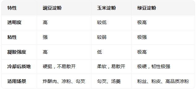 相比綠豆淀粉,豌豆淀粉更易形成均勻芡汁,適合湯羹、醬料的增稠。